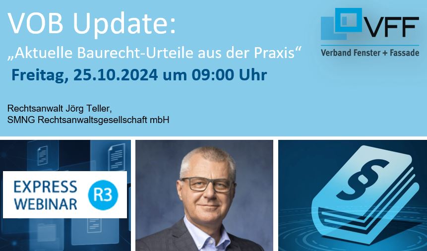Frankfurt am Main, 14. Oktober 2024. Der Verband Fenster + Fassade (VFF) bietet am 25. Oktober 2024 um 9.00 Uhr ein Webinar zu ...