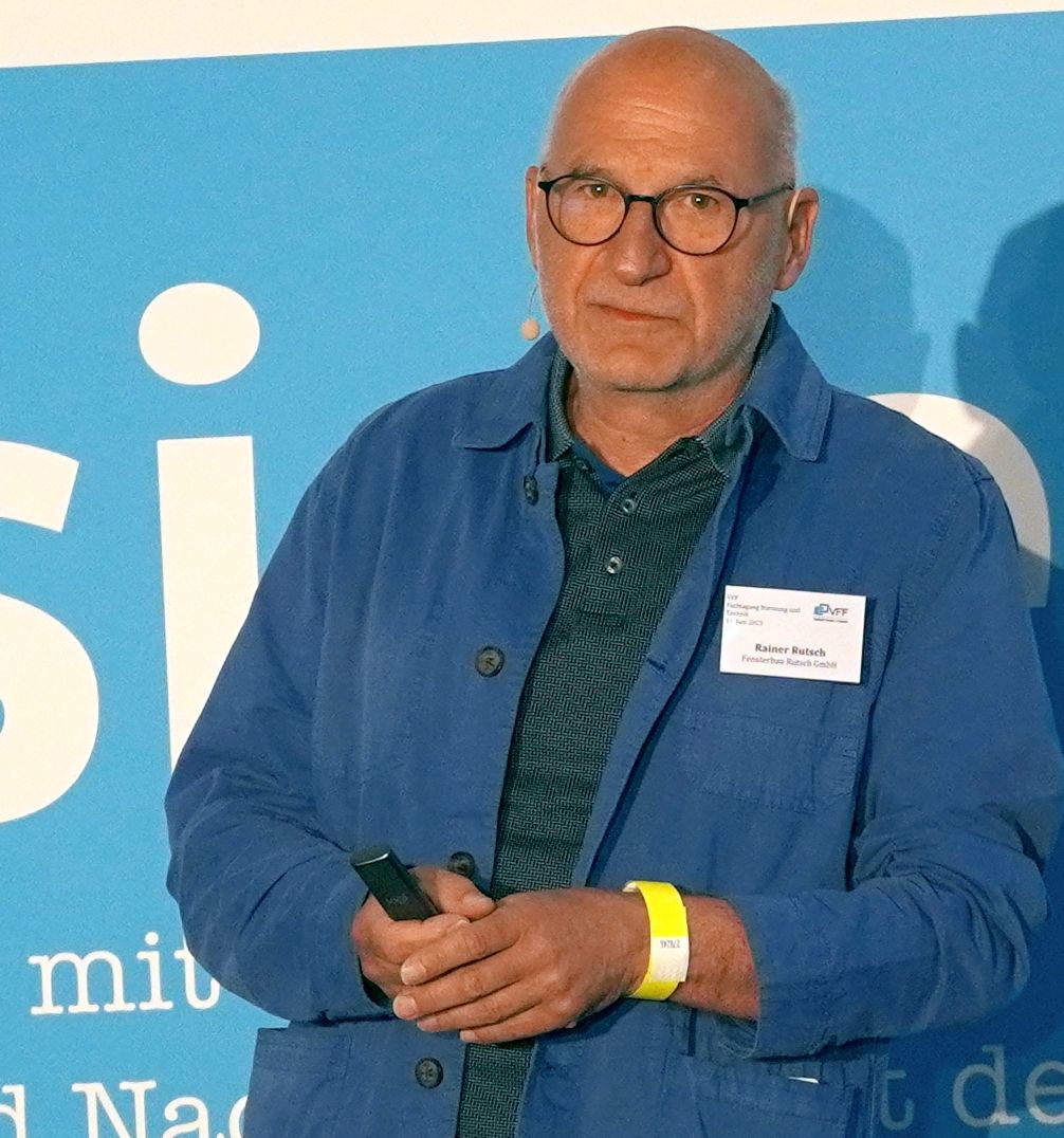 Foto „Rutsch-FT-N&T_2023“: Jahrzehntelange Expertise insbesondere auch im Bereich der Sanierung denkmalgeschützter Fenster bildeten den Hintergrund des Referats von Rainer Rutsch zum Umgang mit gefährlichen Stoffen beim Fensterausbau. (Foto: VFF)
