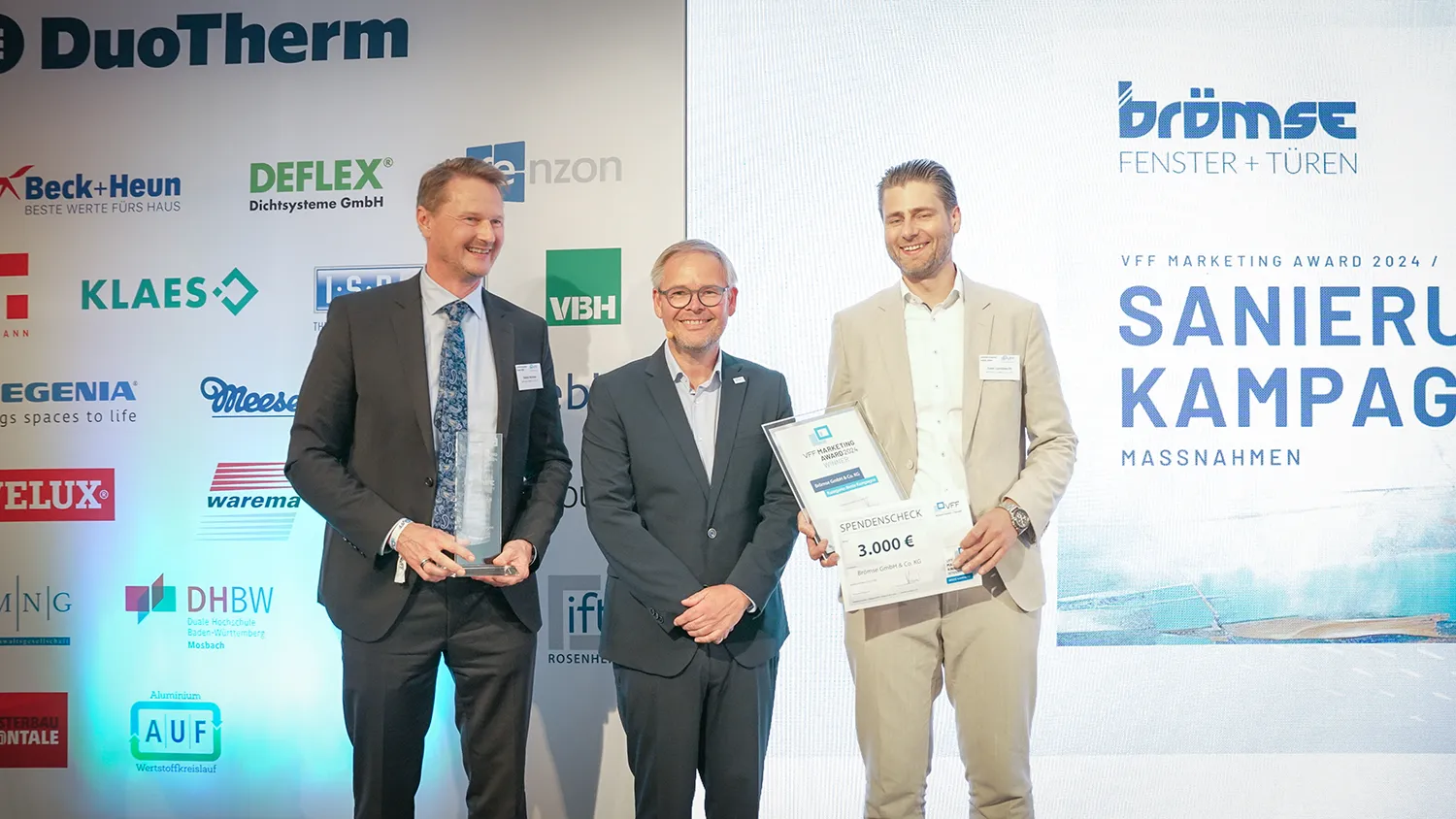 Frankfurt am Main, 11. Juni 2024. Nach mehreren Jahren wurde beim Jahreskongress „Inside 2024“ des VFF Verband Fenster + Fassade wieder der VFF Marketing Award verliehen. Insgesamt gab es starke 59 Bewerbungen für die Kategorien „Beste Kampagne“, „Bestes Video“ und „Specials“, die von einer Fachjury bewertet wurden.
